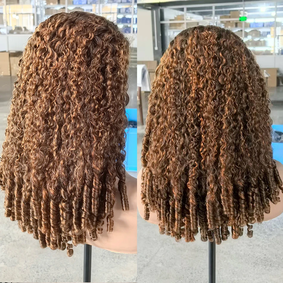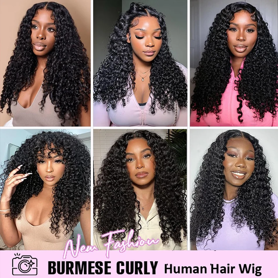 100% Burmese Curly Human Hair Wig With Sprial Curly Ends 5x5 Glueless Lace Closure Wigs Pre Plucked 300% Density Wear and Go Wig