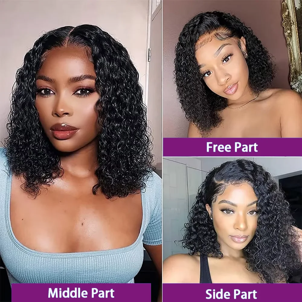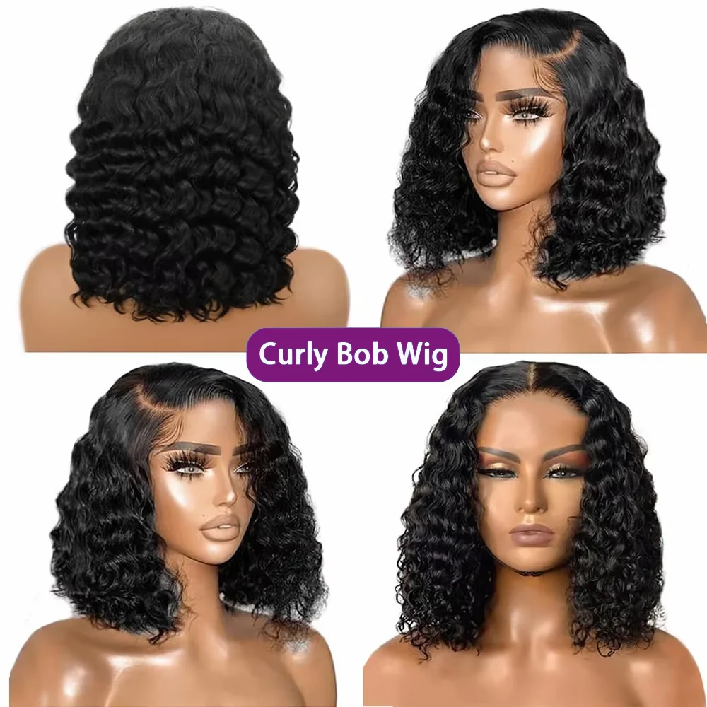 Deep Curly Short Bob Wig 100% Human Hair 13x4 Lace Front Wig Natural Black Deep Wave Pre Plucked Closure Wig 4x4 220% Density