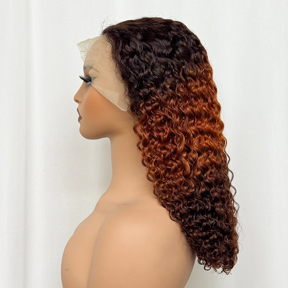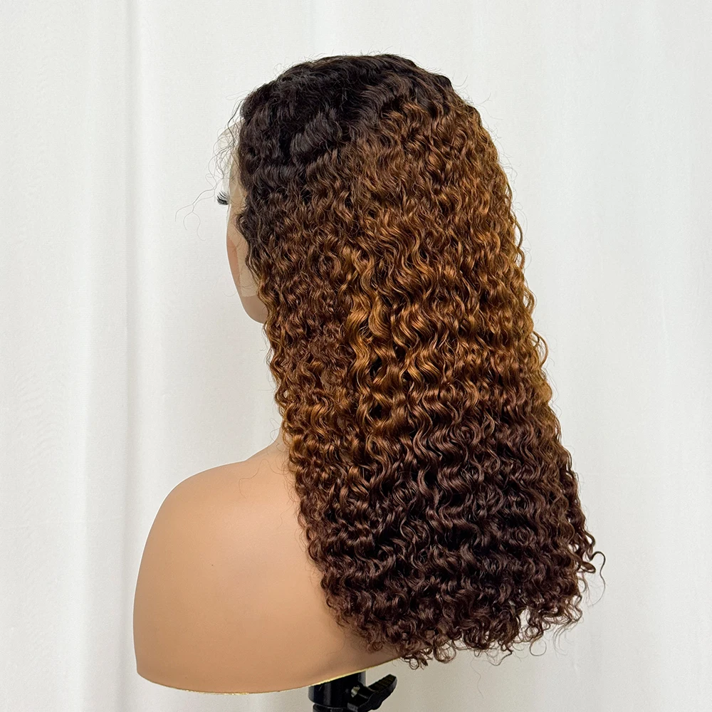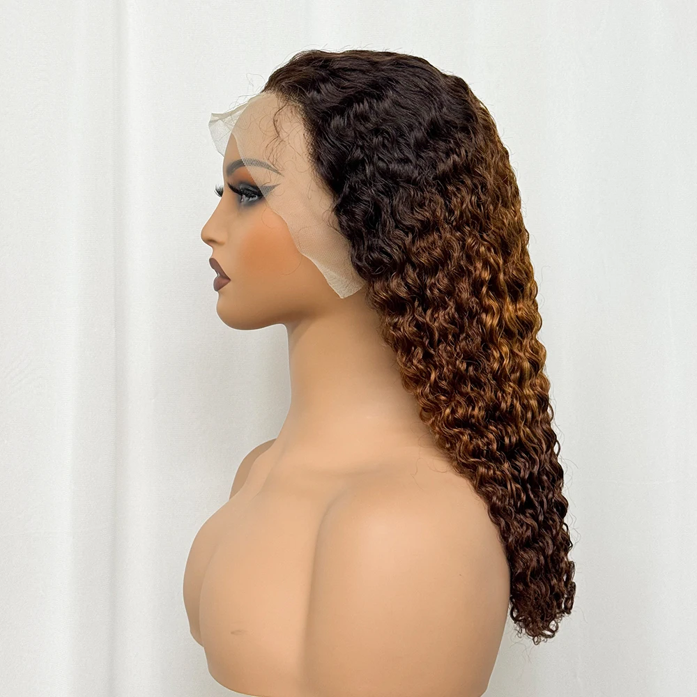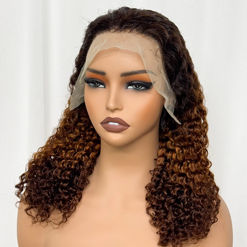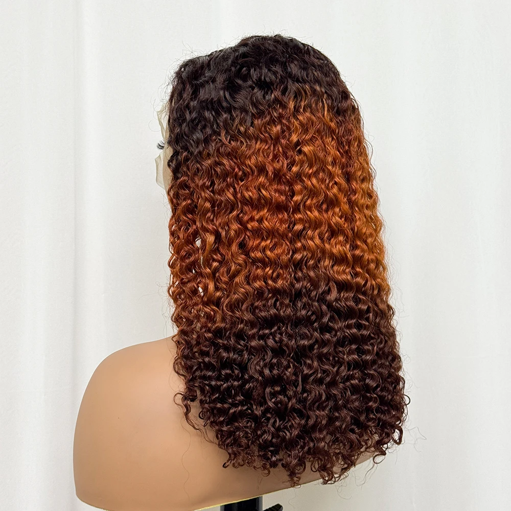 Double Drawn 250% Density Ombre 18 Inches Water Wave Curly Human Hair Wigs 13x4 Transparent Lace Frontal Hair Wig for Women