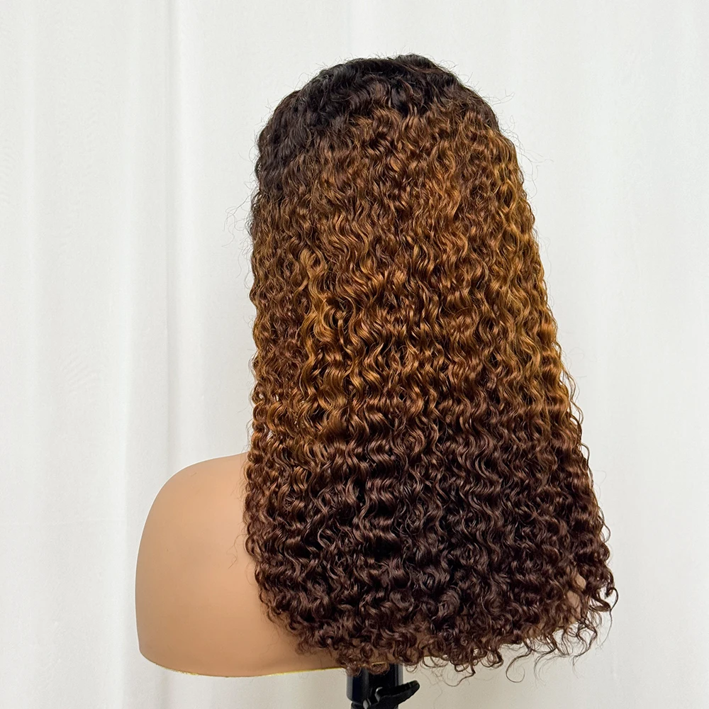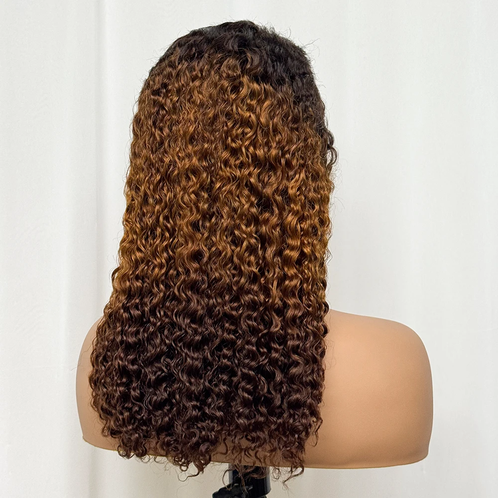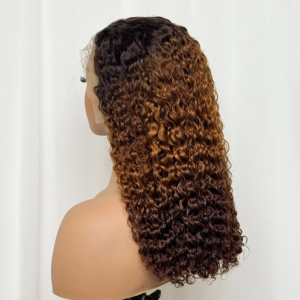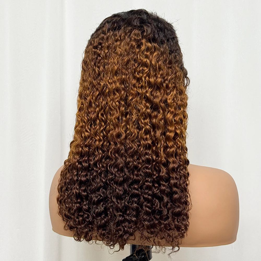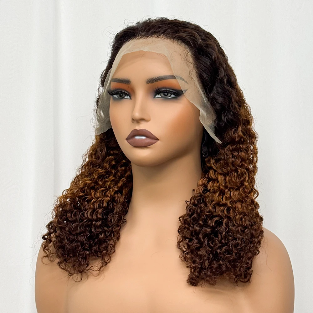 Double Drawn 250% Density Ombre 18 Inches Water Wave Curly Human Hair Wigs 13x4 Transparent Lace Frontal Hair Wig for Women