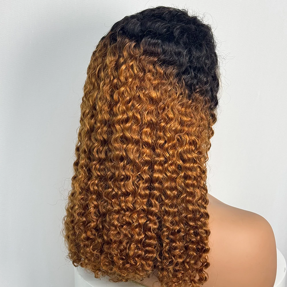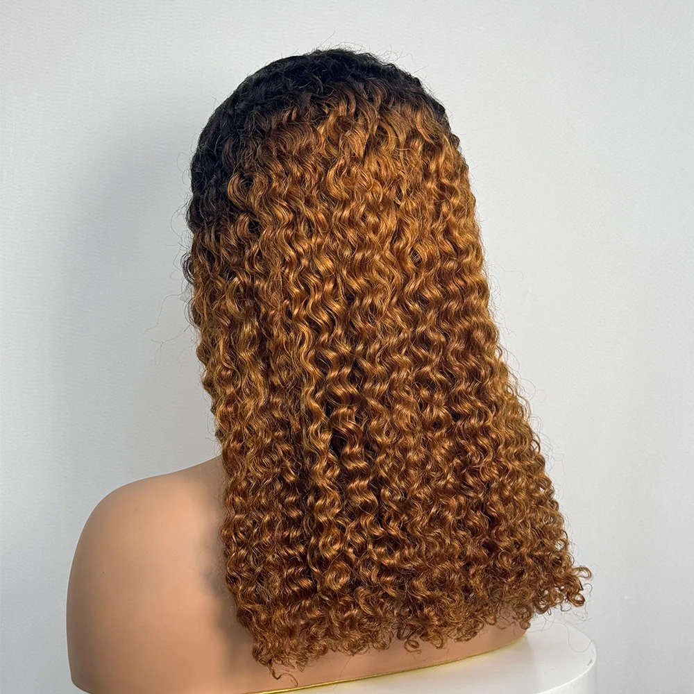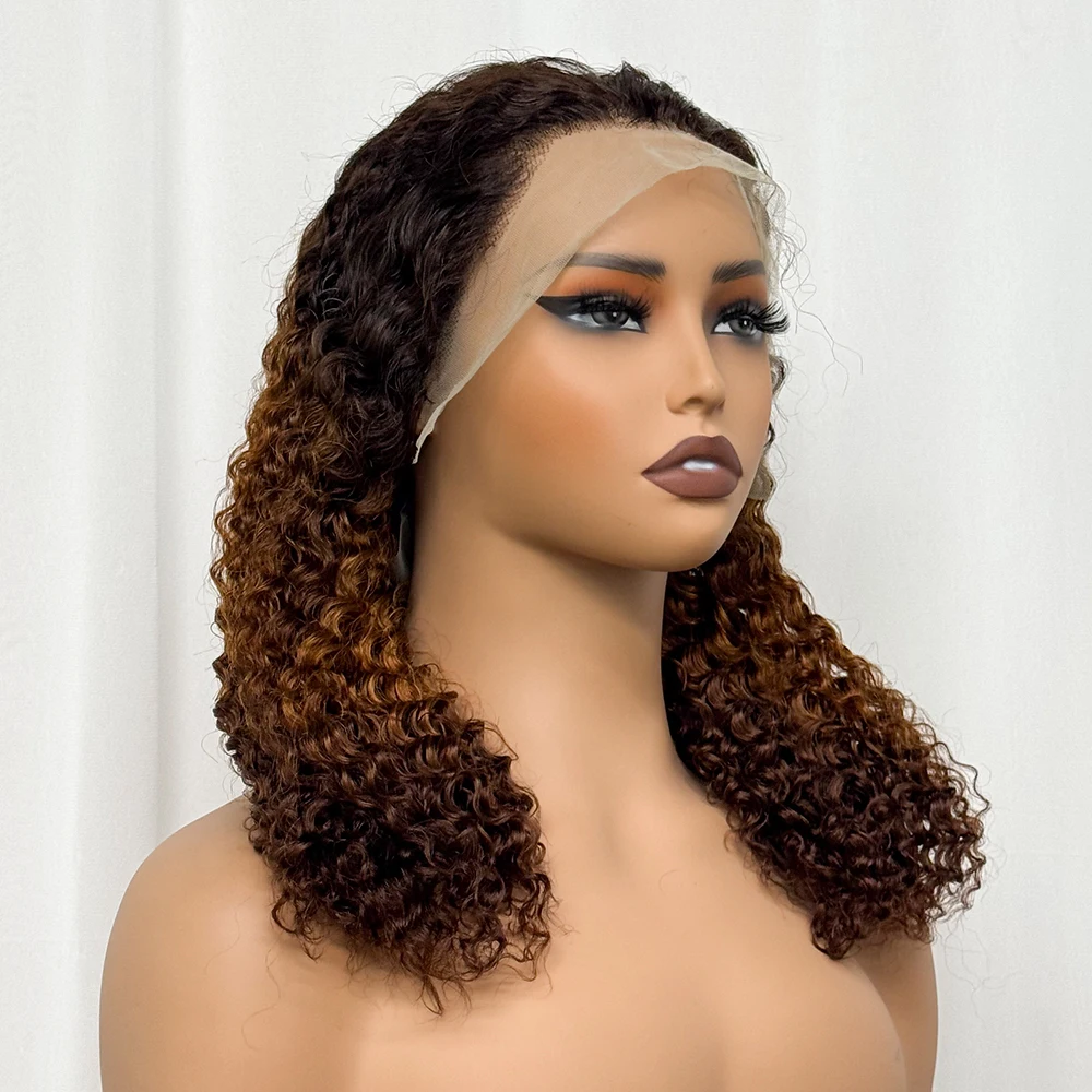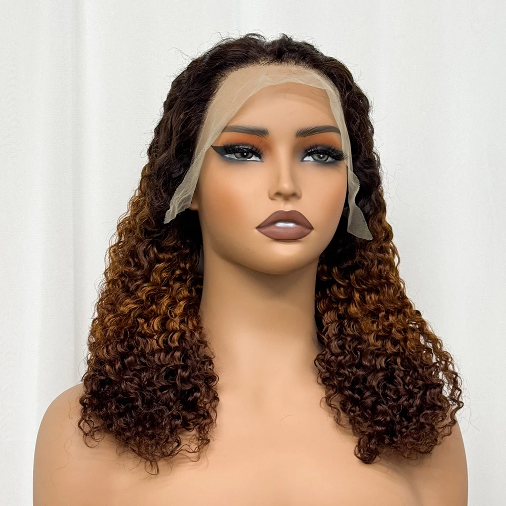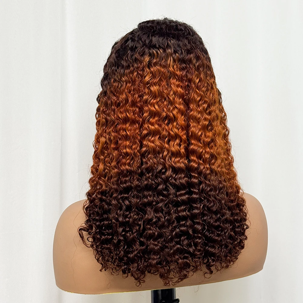 Double Drawn 250% Density Ombre 18 Inches Water Wave Curly Human Hair Wigs 13x4 Transparent Lace Frontal Hair Wig for Women