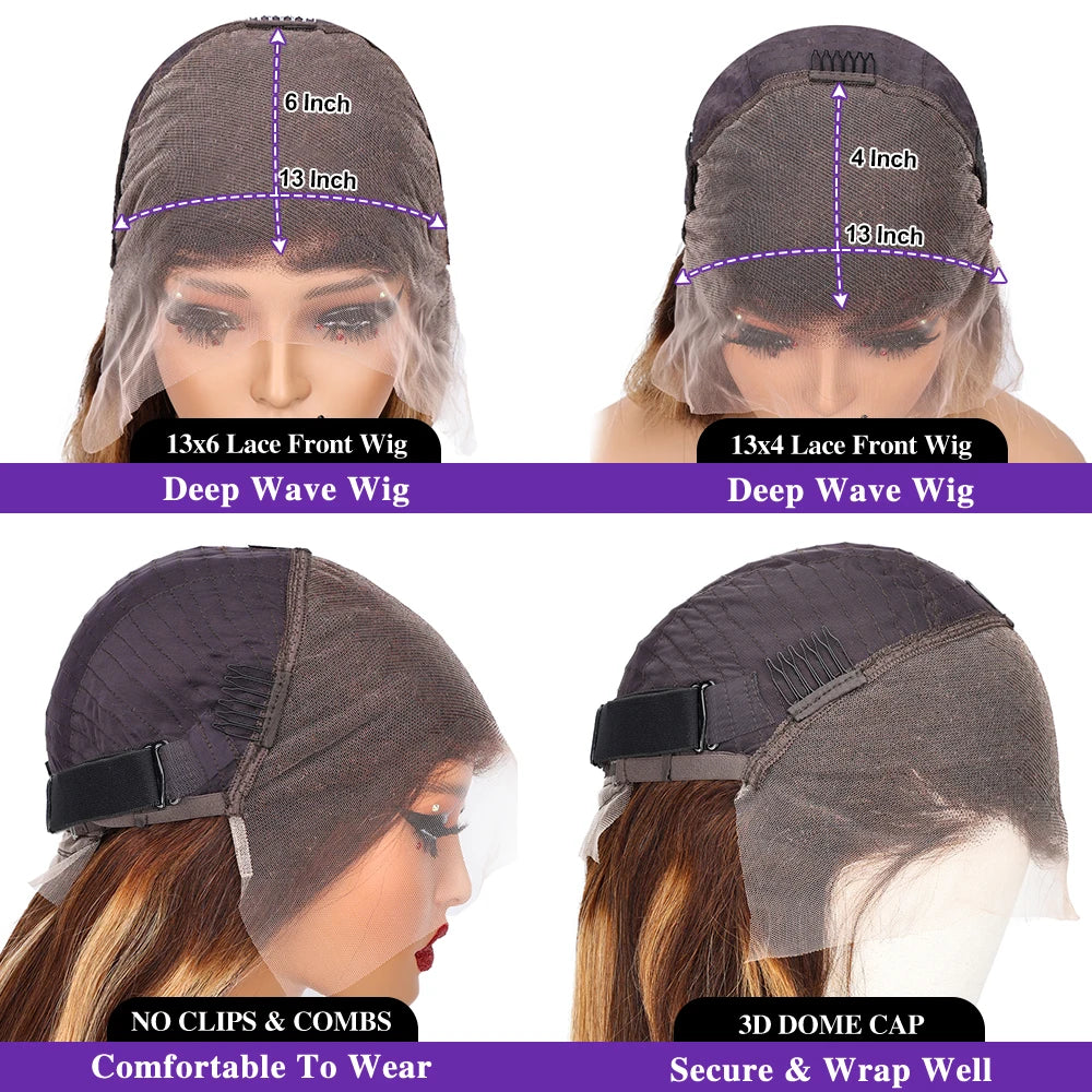Highlight Deep Wave Wigs 100%Human Hair Wig 13x6/13X4 HD Lace Frontal Wig Honey Blonde 13x4 Lace Front Human Hair Wigs For Women