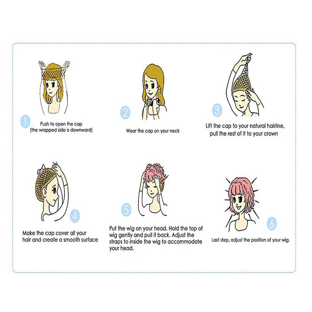 Features: High temperature fiber wig, which can withstand a high temperature of 150 degrees Celsius (300 degrees Fahrenheit) Hat and size: The Hats are average size. The 100% breathable net inside the net makes you feel comfortable when wearing it. There are two adjustment straps on both sides of the wig, you can adjust him to the size of the head that suits you.